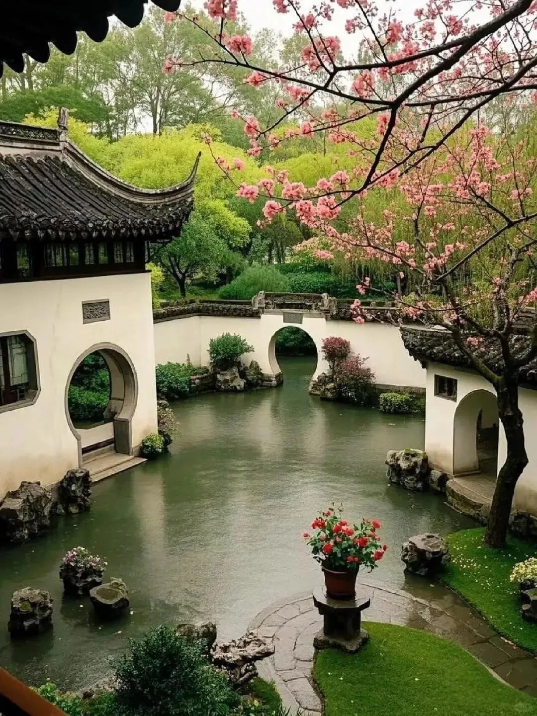 拙政园的.窗,每一扇框.住的景都不同。.坐在.廊下,看池子里的.红鲤聚了.又散。平.江路.摇橹船.欸乃一.声,岸边的评.弹.软语隔着水传过.来,听不.清词.,但调子糯得很。