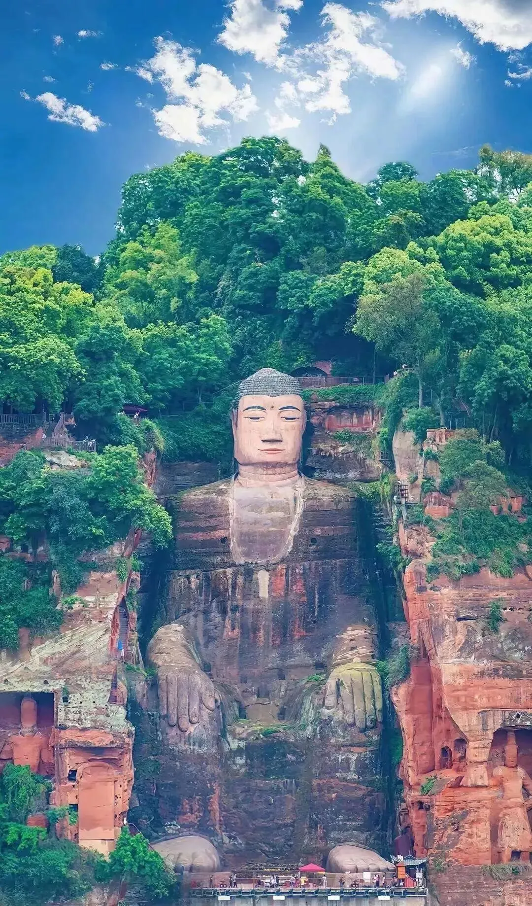 D1:.乐山大佛.(游江观佛.). → 麻浩崖墓 → 乌尤寺 → 张公桥美食街