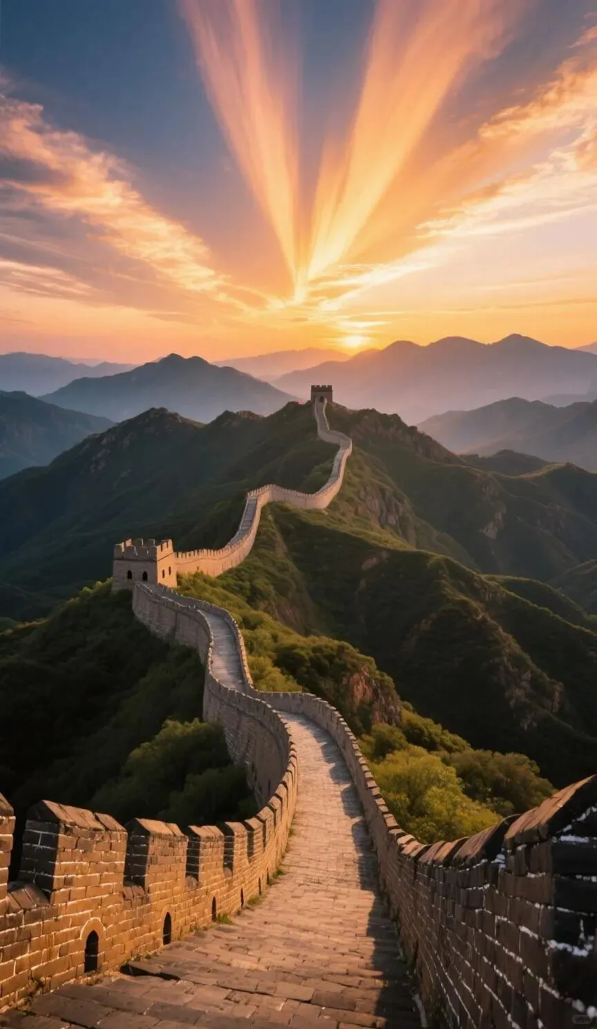 走上陡坡,.砖.石被.磨得光滑,有的地.方.得抓着栏杆.。城.墙外边是深深.的山谷,秋天一片枯.黄。站在敌楼里.,风呼呼往里灌,.想想.几.百.年前士兵也.站在.这里,.看着.一样的山。走.下坡时腿发软.,但.回头一看.,那条灰.龙还.盘在山脊上。