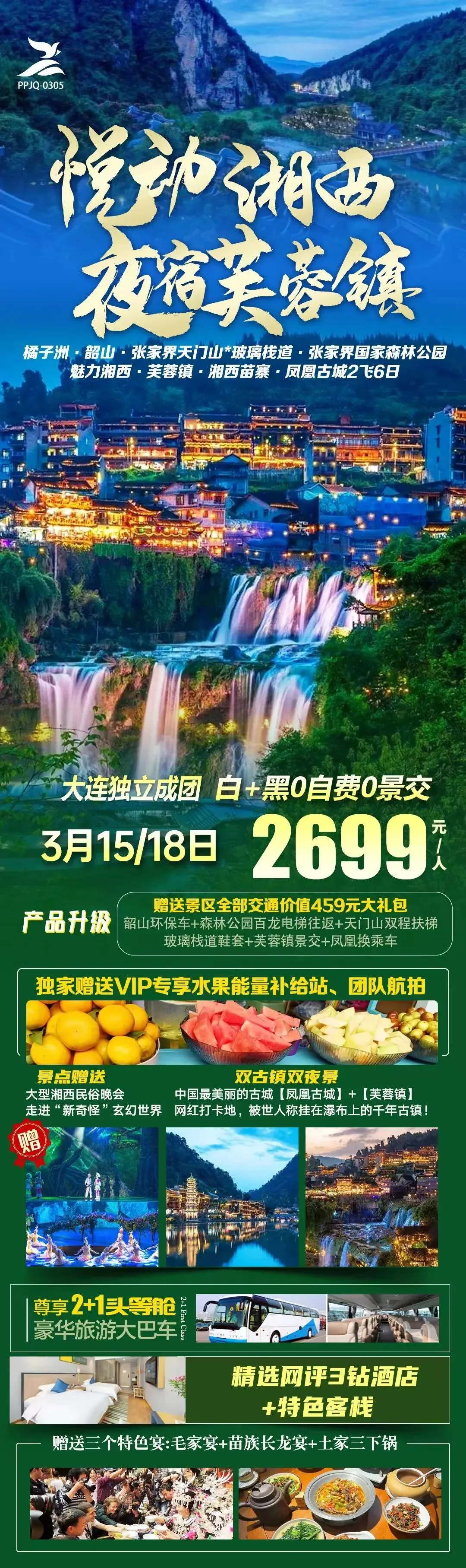 📢 性价比之王!新增班期! 3月15日成团铁发! 悦动湘西 夜宿芙蓉镇