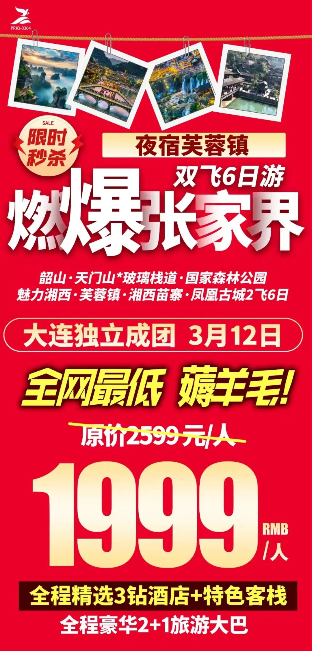 📢新增班期 3月12日 手慢无!1999?这价格还等啥呢?!3月12日 燃爆张家界夜宿芙蓉镇