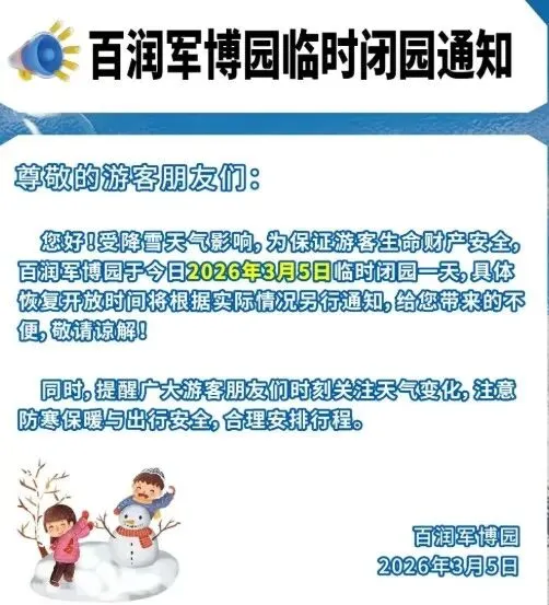 四、百润军博园2026年3月5日临时闭园一天