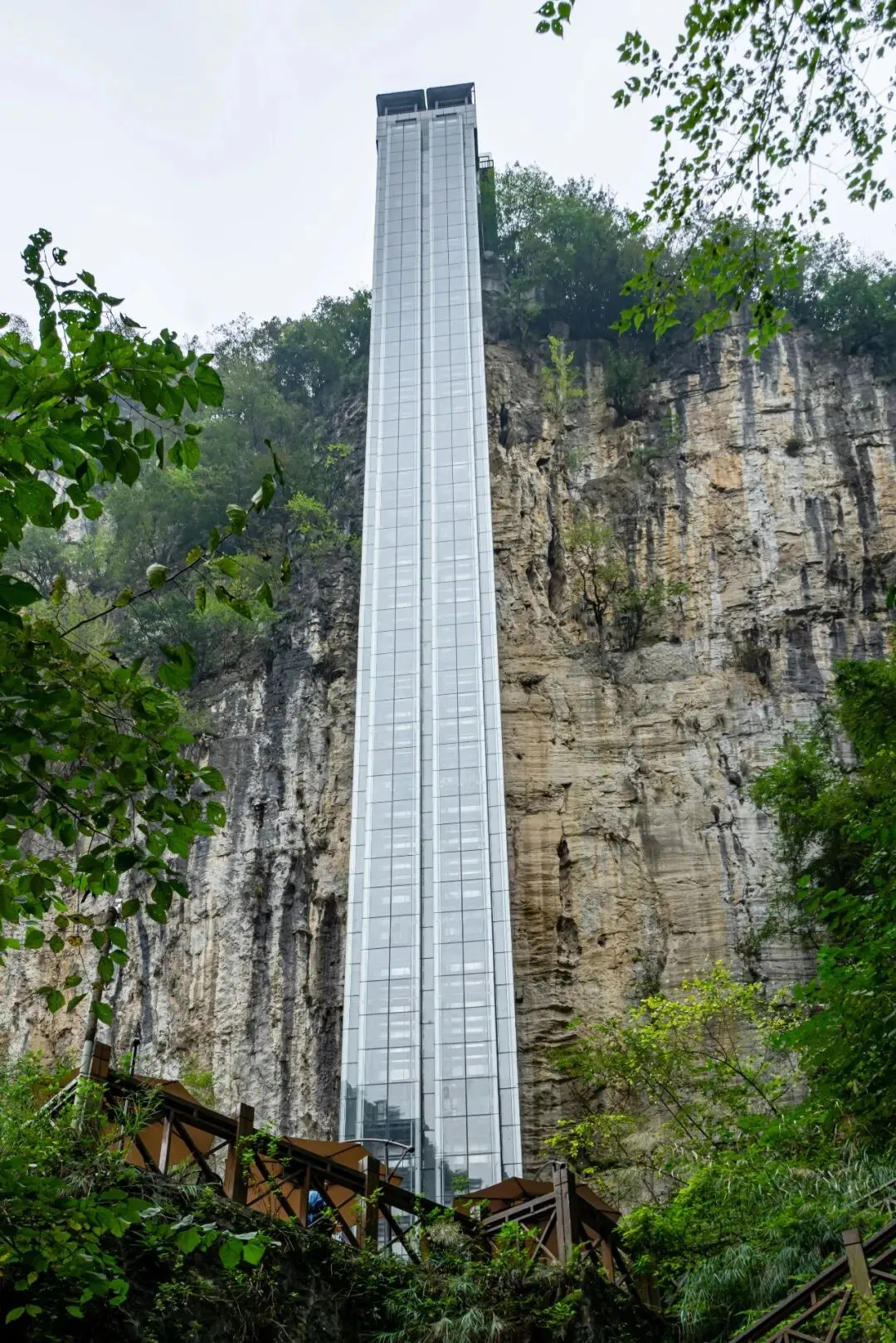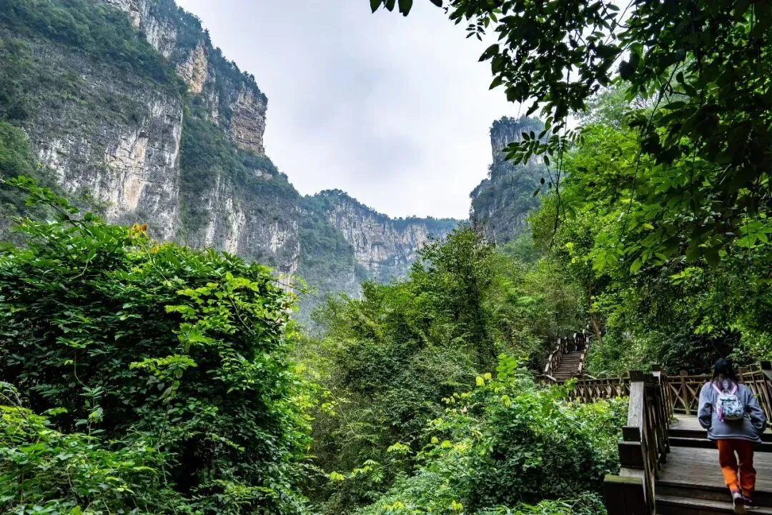 峡谷尽头建有电梯,可直达崖顶,由此出景区。