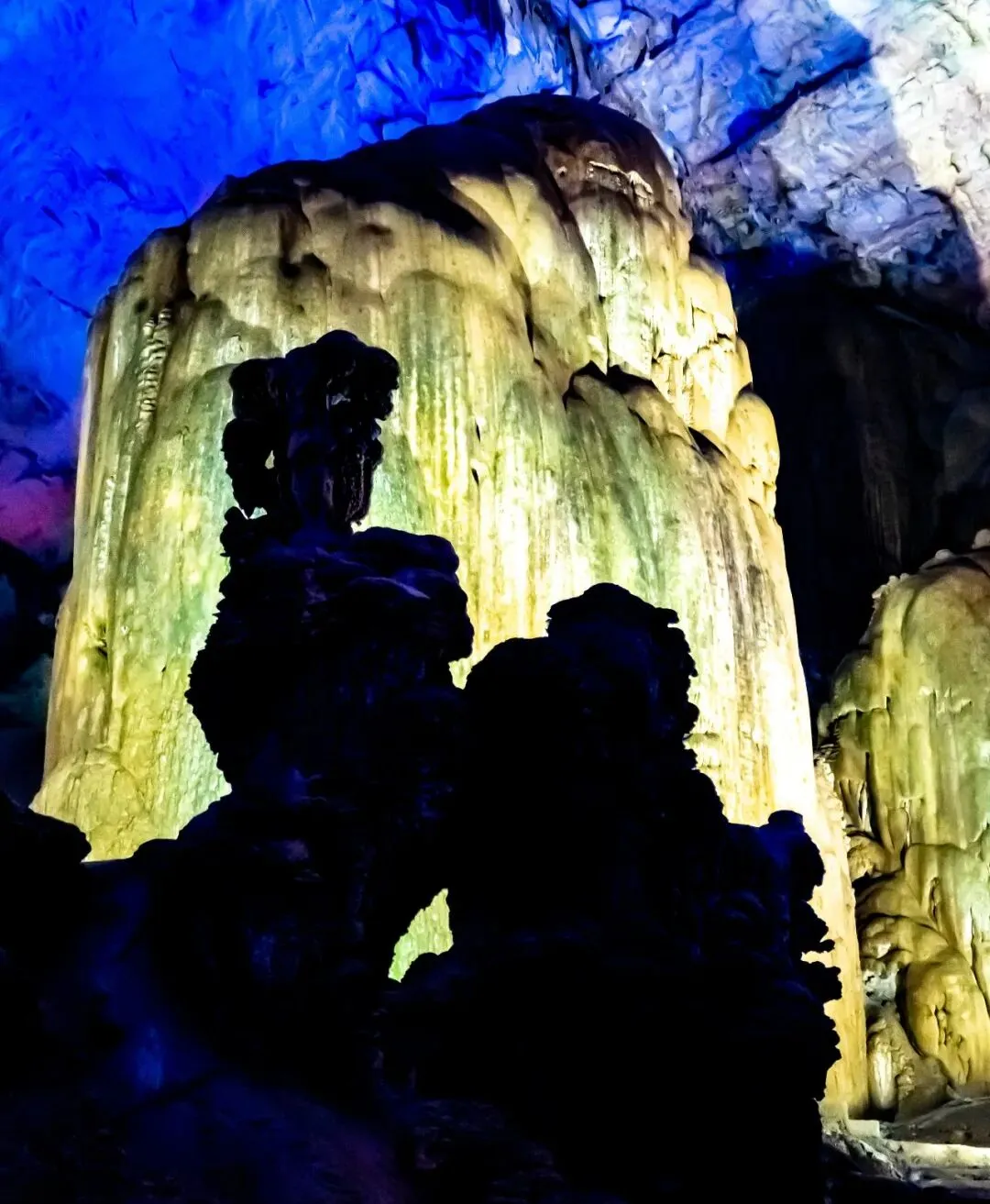 再往前便是“婆媳情深”,象形钟乳石在光影中勾勒出剪影效果,饶有趣味。