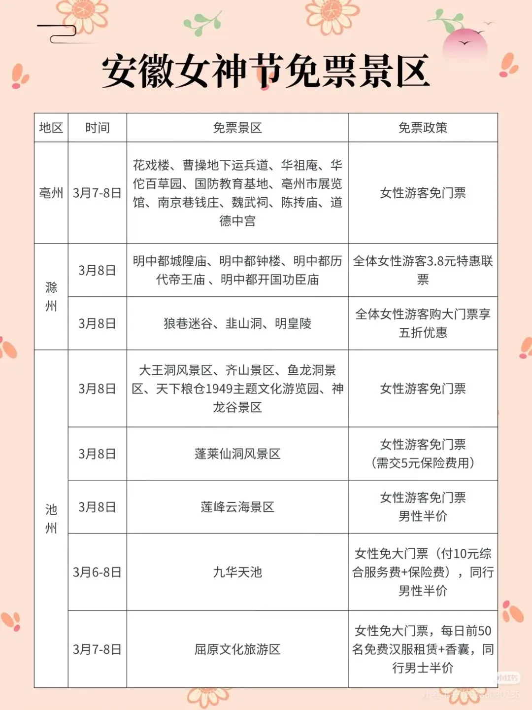 女神节福利!安徽景区免票清单已列好!