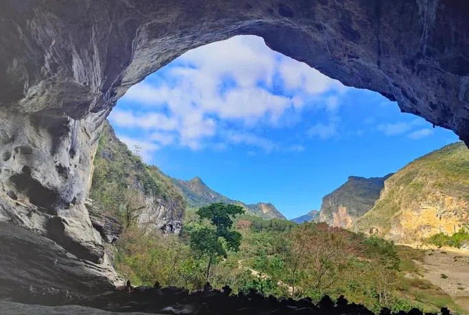 这是个海蚀洞,藏在海岸礁石群里,洞口不大,但进去之后空间挺开阔,洞壁上能看到明显的海水侵蚀痕迹,不同高度的侵蚀线反映的是海平面的历史变化,这些痕迹让你意识到,现在看到的海岸线不是固定的,是一直在变的,几千年前的海平面跟现在不一样,以后也会继续变。