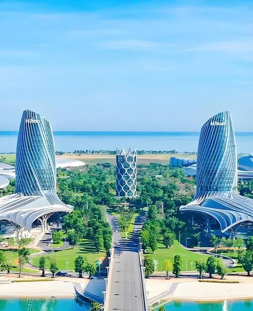 从这个角度看过去,能同时看到原始的海岸礁石和现代的人工岛屿,这种对比很明显,一边是几万年形成的自然地貌,一边是几年时间建起来的人工结构,这两个东西放在一起,让你重新思考开发和保护的边界在哪。