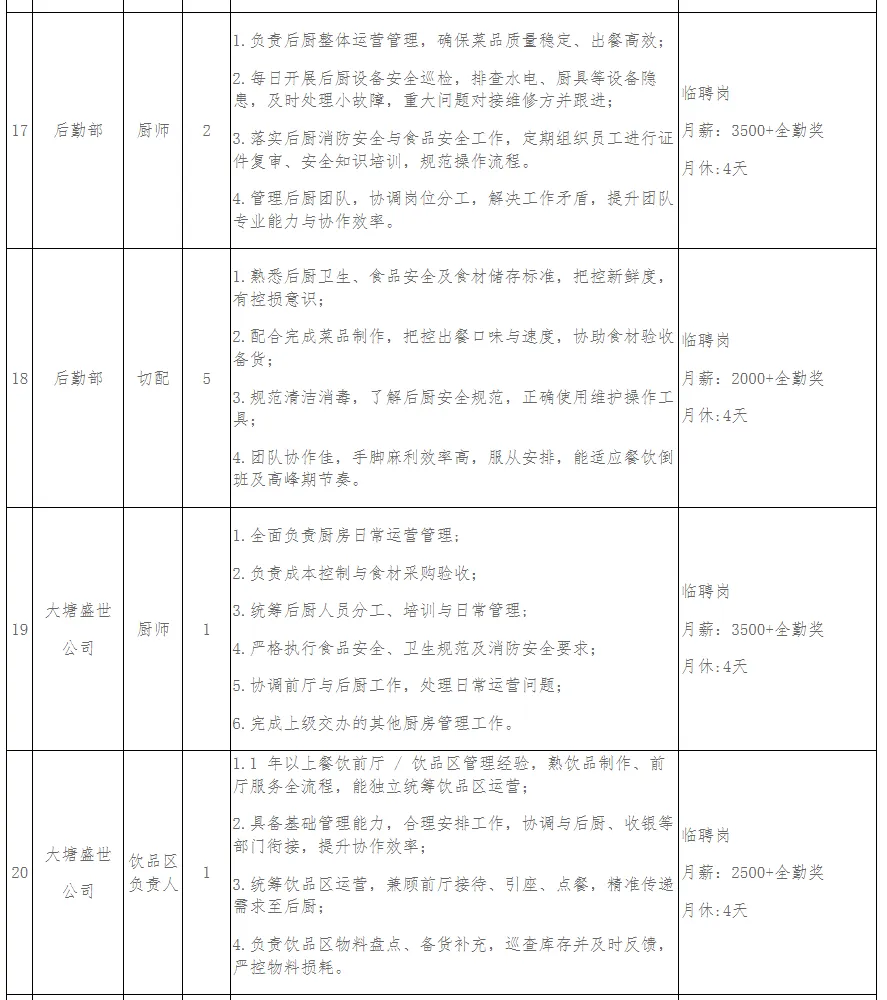 为了更好的适应公司的发展需要,满足公司的人才需求,提升公司的服务水平,加快公司的发展进程,大塘文旅公司向社会公开招聘急需人员若干名。