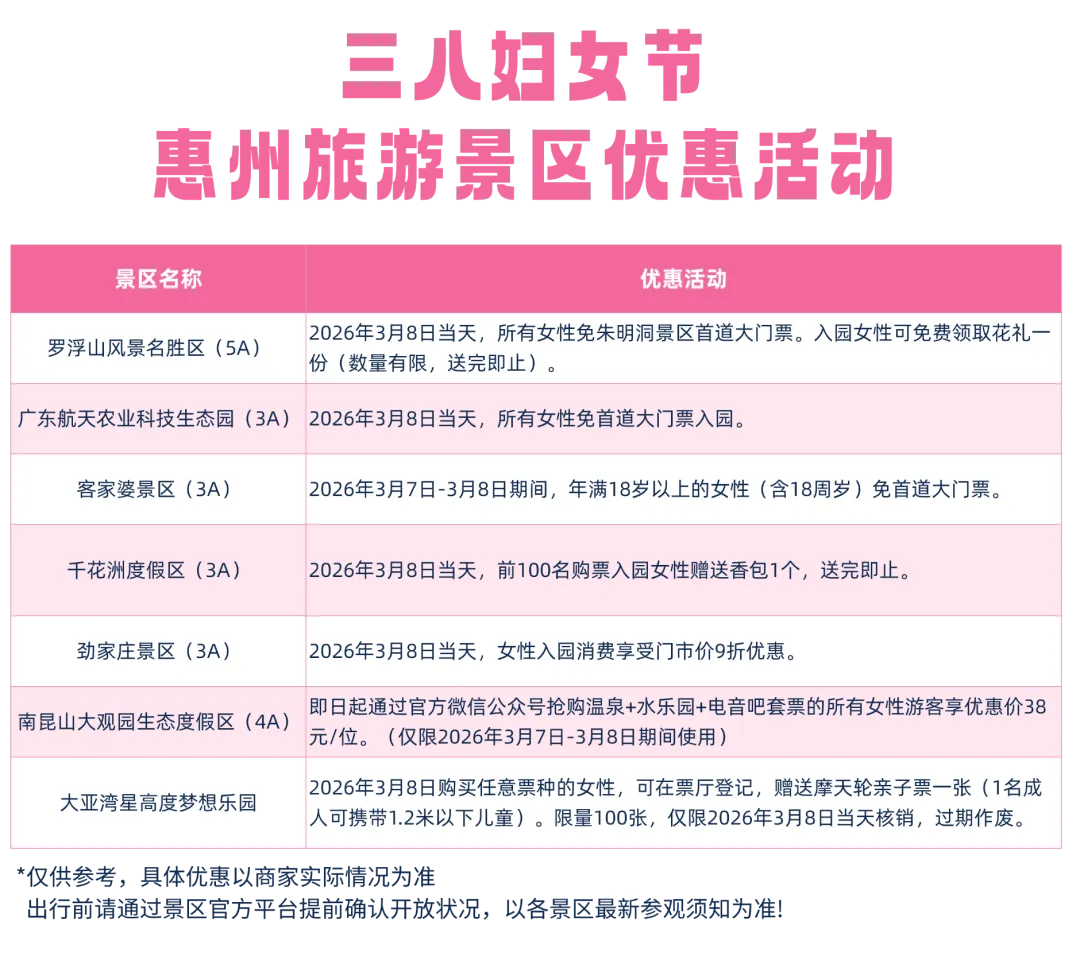 2026年3月7日-3月8日期间,年满18岁以上的女性(含18周岁)免首道大门票。