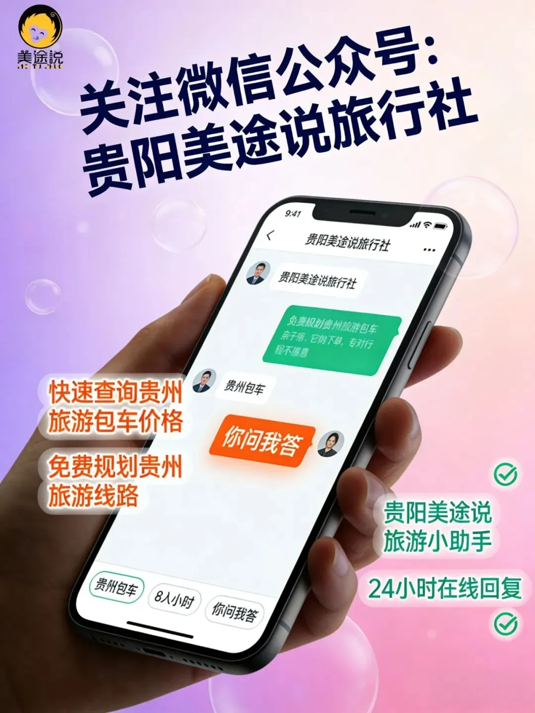 2026年的贵州,山水依旧秀美,民族风情依旧浓郁,关键是优惠还这么给力!别再等攻略、别再纠结行程了,直接联系贵阳美途说旅行社,18285125548,让我们帮你把这波文旅福利薅到底,一起解锁2026最值的贵州之旅~ // 美途说带你玩转贵州 // 24小时服务热线:18285125548(微信同号) —— END ——