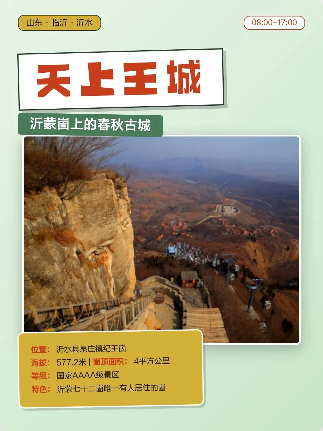 3月14日 星期六 山东 4A景区:天上王城 (纪王崮)既能爬山又好玩的地方 一日游