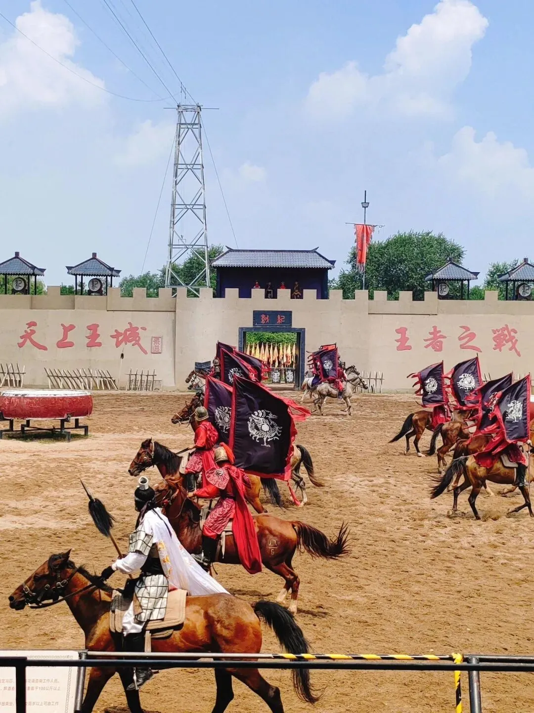 演武场演武场总面积3600平方米,配有演员100余人,马40多匹,主要表演以西周历史为背景的大型古代马战节目“王城保卫战”。