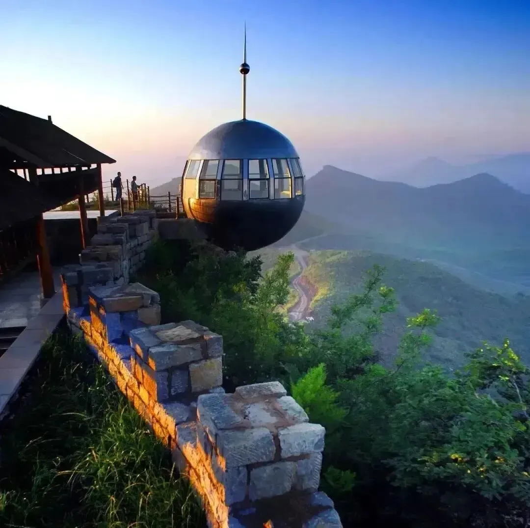 空中观景台空中景观台是用强化透明玻璃和钢材建成,采用悬臂式设计,两边的球形观光台和栅栏式观景平台,各伸出崖壁10米,下距谷底约300多米,在此可以观看周边的山崮风貌