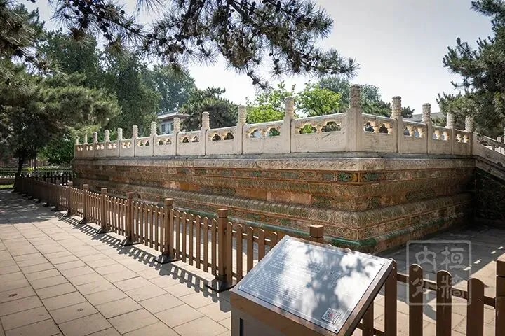 观耕台 观耕台是皇帝观看大臣行耕耤礼的观礼台,建于清乾隆十九年(1754年),砖石结构,台高1.6米,台平面19米见方,须弥座以黄绿琉璃砖砌筑,装饰精美。