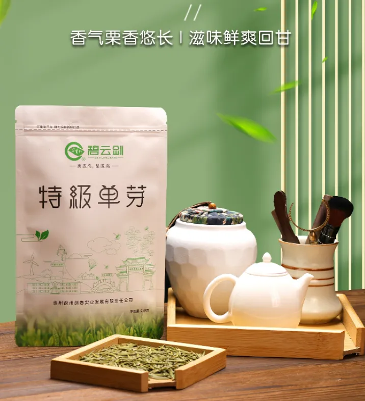 “碧云剑”作为盘州市茶叶公共品牌,市茶叶协会深耕产品创新与品牌升级,品牌紧扣市场趋势,精研绿茶、红茶、白茶全品类,特邀茶叶专家、非遗炒茶大师领衔专业团队,以严苛标准把控每道工序,将滋味口感、汤色质感作为品质核心,用匠心好茶赢得消费者信赖。“碧云剑”分为特级单芽、高原龙井(一级)、碧云春(毛峰)、凉都茗珠、盘州红五大子品牌,礼盒与散装双线并行,多元满足品鉴、礼赠、日常饮用需求,引领盘州高山茶新风尚。