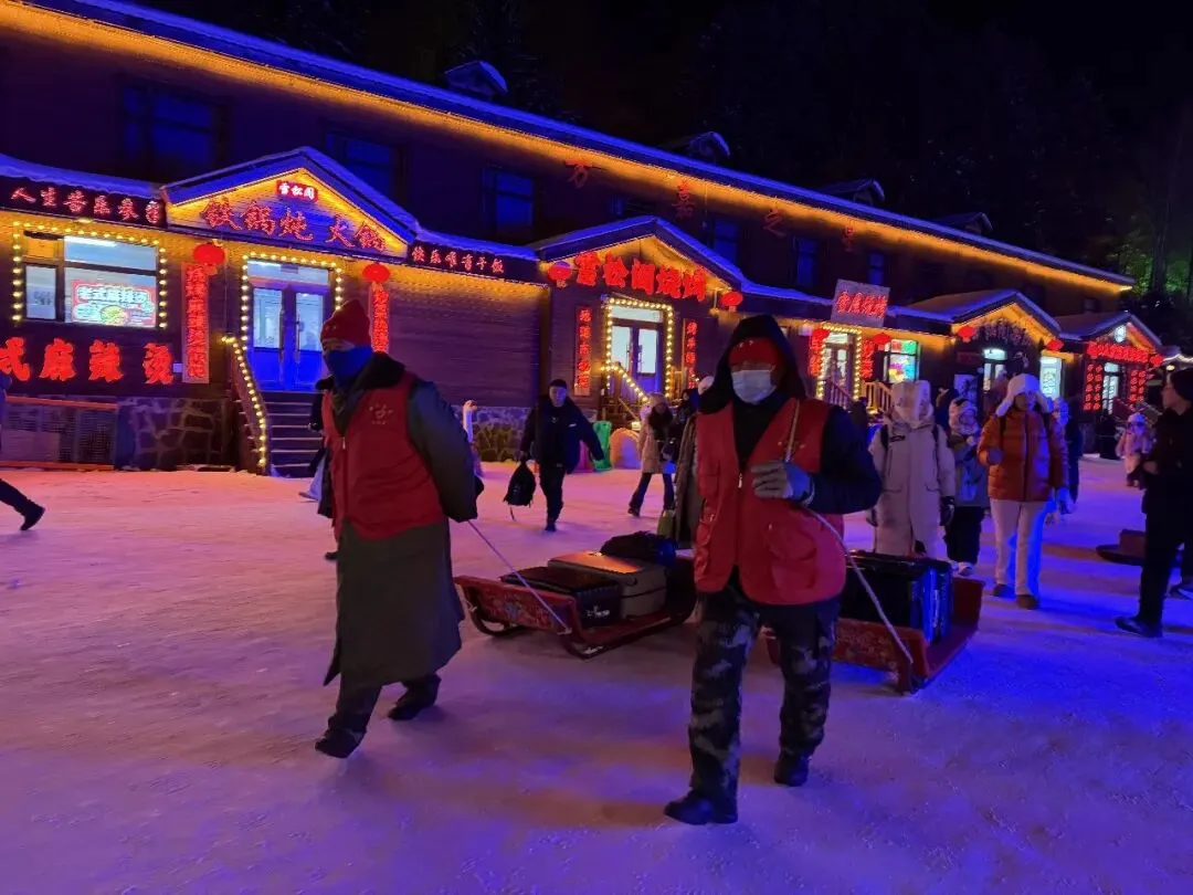 今冬,雪乡把服务做到游客心坎上,构建全流程、全方位暖心服务体系。景区在核心点位设置爱心驿站,免费供应现熬红糖姜茶、热豆浆、冰糖雪梨等热饮,为游客驱散严寒;爱心爬犁为老人、儿童及行李繁重的游客提供免费运送服务,成为雪乡街头温暖风景线。倒站车讲解员随车讲解景区特色与游玩攻略,路导工作人员在严寒中坚守岗位,高效引导车辆分流,保障通行顺畅;佩戴“有事找我”胸牌的巡防队员24小时网格化值守,守护景区安全与秩序;环卫工人昼夜清雪保洁,细致维护景区洁净美观。景区完成国营商店扩建,新增国营砂锅、国营火锅特色餐饮,进一步丰富游客消费选择,始终坚持平价惠民、诚信经营,持续提升服务品质,用实际行动彰显国企责任与担当。同时,在运营季期间景区面向游客发放3000余份调查问卷,广泛吸纳游玩体验、服务优化等意见建议,以游客满意度为导向,持续优化游览体验,不断擦亮景区优质服务品牌。