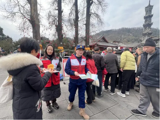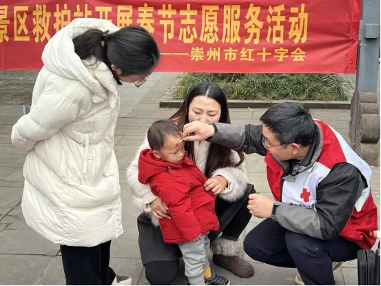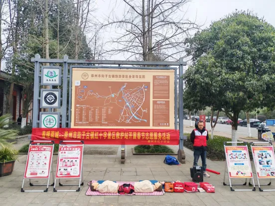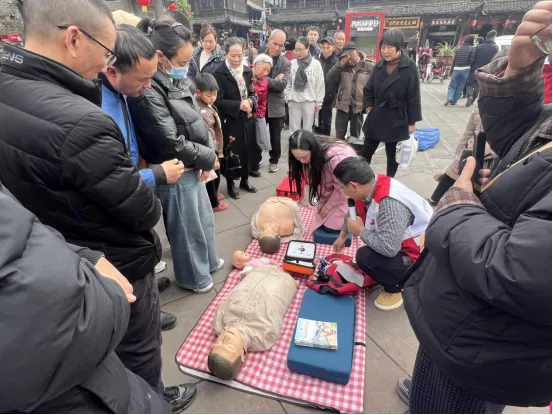 为深入践行“人道、博爱、奉献”之红十字精神,切实增强群众应急救护意识与自救互救能力,筑牢景区春节期间公共安全屏障,2026年春节期间,崇州市红十字会于街子古镇红十字救护站(银杏广场、游客接待中心)精心组织了一场为期两天的应急救护知识普及志愿服务活动。该活动聚焦实用性与互动性,吸引了众多景区游客及周边商家踊跃参与,取得了良好的社会效果。