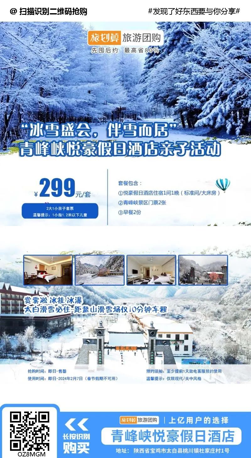 推荐3:“冰雪盛会,伴雪而居”!¥299抢价值588元「青峰峡悦豪假日酒店」2大1小亲子套票=高级客房住宿1晚+2张青峰峡门票+2份早餐