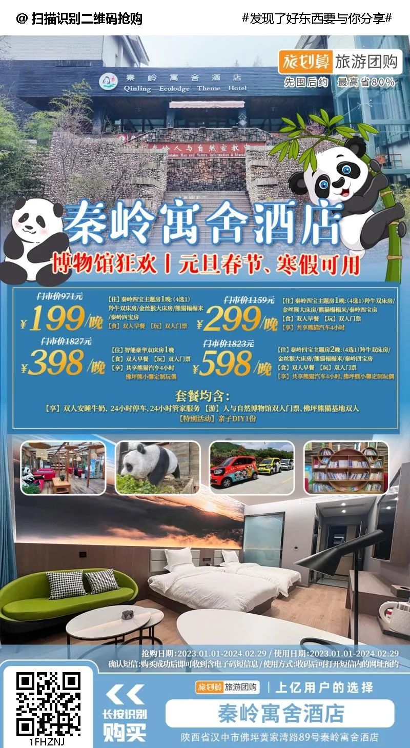 重点推荐:【春节可用】【汉中佛坪丨博物馆狂欢】45分钟高铁即达~打卡“西北动物标本展览第一馆”!¥199起抢价值971元「秦岭寓舍酒店」秦岭四宝主题房4选1+双人门票+免费游佛坪熊猫基地!!