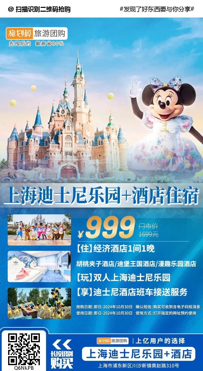 推荐17:【上海迪士尼乐园】仅¥999抢上海迪士尼乐园门票2张+周边酒店1晚(多店通兑)+接送!观看盛大的花车巡游!仙境迷宫等!!