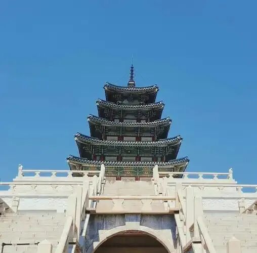 始建于1395年,名称取自《诗经》“君子万年,介尔景福”。宫殿依明朝王府规制建造,占地57.75公顷,采用丹青色区别于中国皇宫,现存勤政殿、光化门等主体建筑,南为光化门、东建春门、西迎秋门、北神武门。该宫于1592年的万历朝鲜战争中遭焚毁,1865年由兴宣大院君李昰应重建 。1910年日本吞并朝鲜半岛后,在日据时期被大规模拆除,仅保留勤政殿等建筑,并于宫前建造朝鲜总督府。1995年韩国光复50周年之际,政府启动原址复建,2010年恢复光化门汉字匾额。