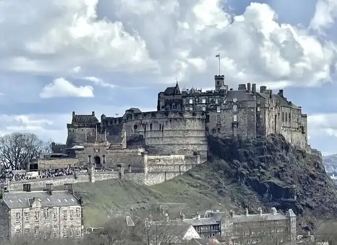 爱丁堡城堡位于英国爱丁堡市Castlehill的死火山岩顶,海拔135米,三面悬崖,形成天然要塞。该城堡6世纪成为苏格兰皇室堡垒,1093年玛格丽特女王在此逝世后发展为重要皇家住所及行政中心,16世纪初被荷里路德宫取代前一直是英国重要皇室城堡之一。城堡在12至16世纪间作为苏格兰皇家城堡见证多次战争,17世纪起成为军事基地,现存最古老建筑为12世纪建造的圣玛格丽特礼拜堂。