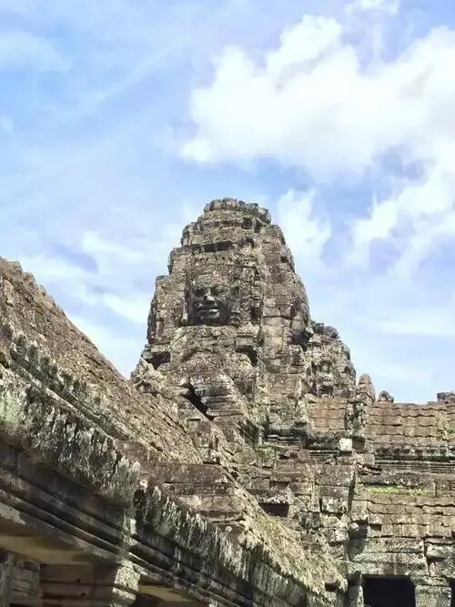 巴戎寺是柬埔寨暹粒省吴哥城中心的佛教寺庙,由阇耶跋摩七世于12世纪末主持重建,现被视为吴哥城的象征。该寺由54座石质佛塔构成(含49座四面佛塔和5座城门佛塔),中心塔高45米,象征吴哥王朝鼎盛时期管辖的54个州,现存回廊东西长160米、南北长140米,残留石柱及墙壁雕刻记录古代战争、市井生活等场景。寺庙采用三层基台结构,底层与中层为方形回廊,顶层为圆形佛塔群,现存49座四面佛塔上的微笑佛像以阇耶跋摩七世为原型(即“高棉的微笑”)。