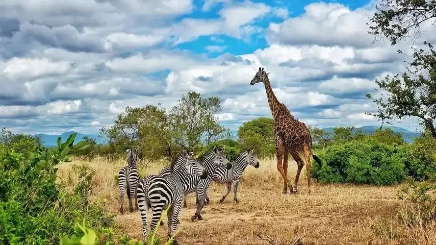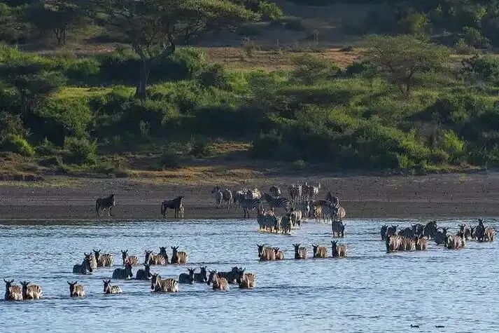 塔兰吉雷国家公园位于坦桑尼亚阿鲁沙西南部118千米处,占地面积约2600平方千米。公园名称源于流经园内的塔兰吉雷河,旱季成为动物主要水源地。公园以季节性生态系统为中心,拥有半干旱的金合欢稀树草原、猴面包树和白蚁丘景观。这里是非洲大象主要聚集区,同时栖息狮子、豹子及550余种鸟类,包含黄领爱情鸟等特有物种。塔兰吉雷河在旱季(7-11月)吸引牛羚、斑马、长颈鹿等动物聚集,形成高密度观测区。