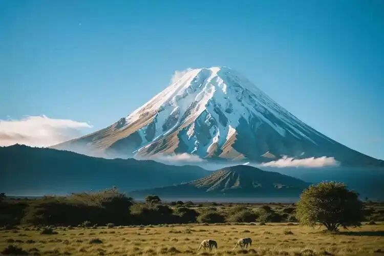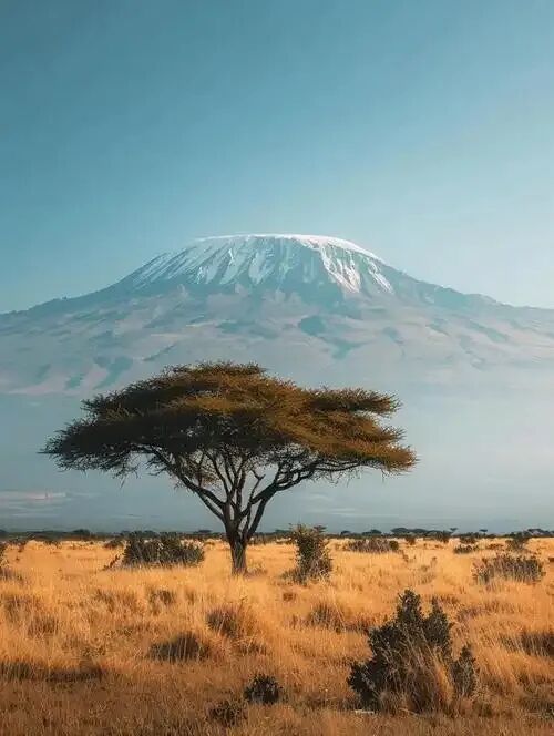 乞力马扎罗山,位于坦桑尼亚和肯尼亚边界处,是非洲最高的山脉,素有非洲屋脊、非洲之王之称,为东西延伸约80干米的休眠火山群,是坦桑尼亚与肯尼亚的分水岭 ,山体位于东非大裂谷以南160千米,山顶终年积雪,山坡以连续直坡下降近5000米,主峰基博峰海拔5895米,是非洲第一高峰。乞力马扎罗山约形成于75万年前的火山运动,由基博、马文兹和希拉三火山组成,后希拉锥体崩塌消失,马文兹随后,基博峰作为中央年轻灰内锥保持活力。
