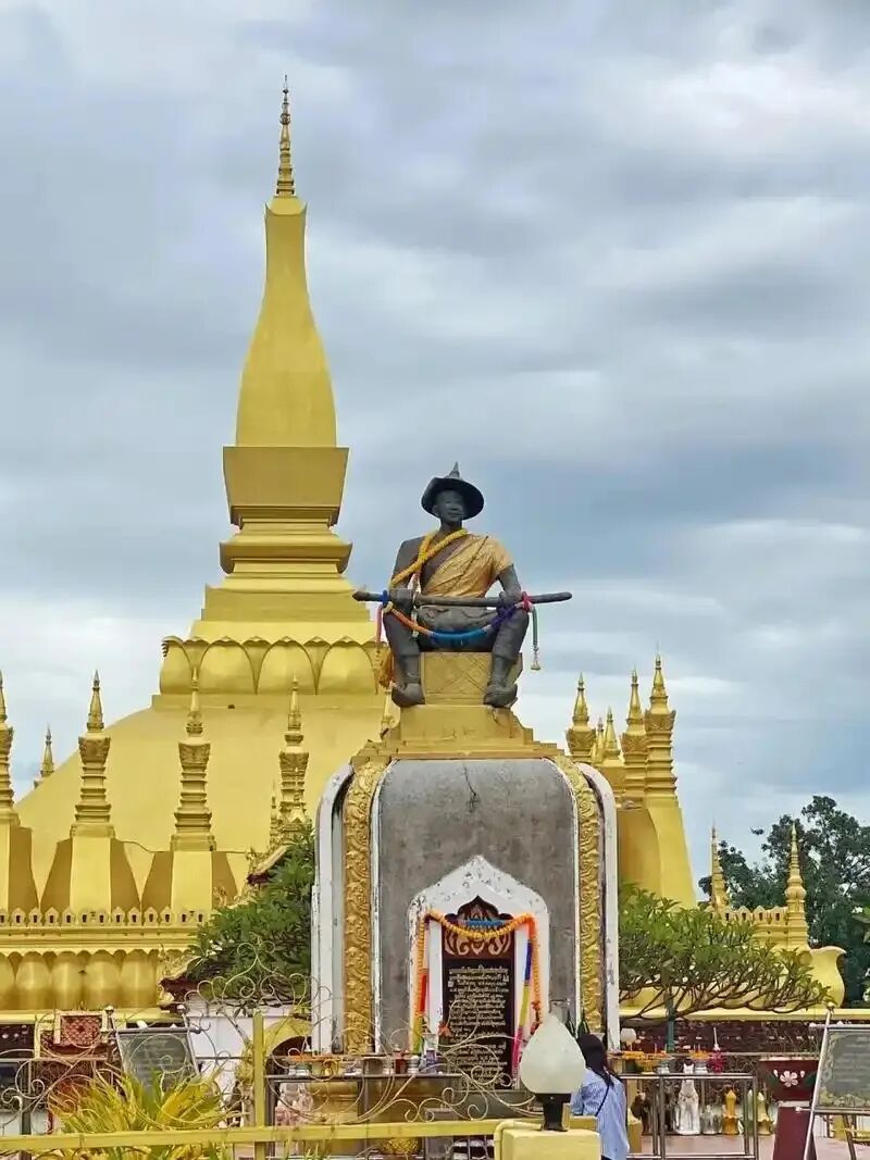 塔銮是老挝万象市以北5公里的佛教建筑群,由镀金主塔和30座卫星塔组成,现存建筑为1930年按原貌重建。主塔高45米,三层塔基象征佛教"三界",灰砖结构配鎏金尖顶与莲花浮雕,占地面积8400平方米,其形象被用于老挝国徽与货币设计。名称"帕塔舍利洛迦朱拉玛尼"源于1566年澜沧王国塞塔提拉国王扩建时命名,意为供奉佛舍利的圣塔。
