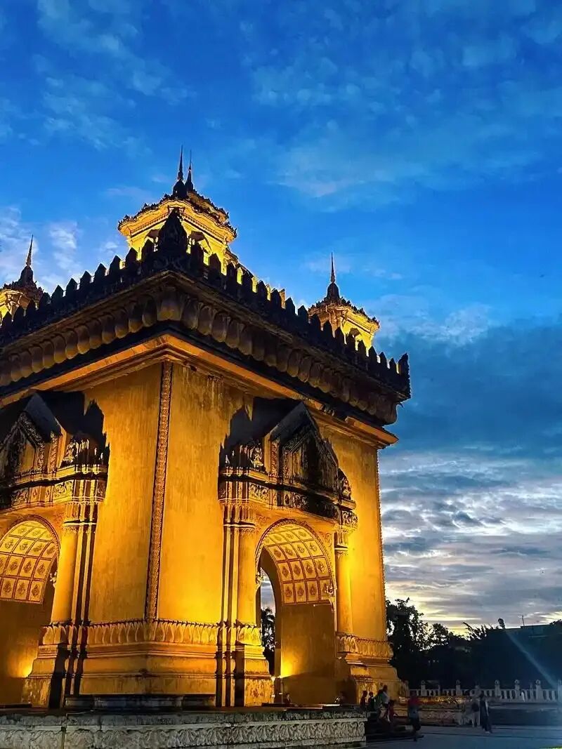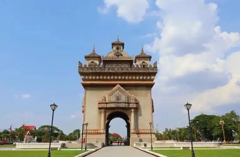 老挝凯旋门英文称:Patuxay 高45米,宽24米,位于万象市中心,在总理府附近,与主席府遥遥相望。1957年开始修建,由法国工程师设计,1969年基本完工 ,是一座大型的纪念碑。原为纪念战争中的牺牲人员。1975年解放时,万象市群众庆祝胜利的游行从这里通过,为纪念这一历史性事件而将其称为凯旋门。