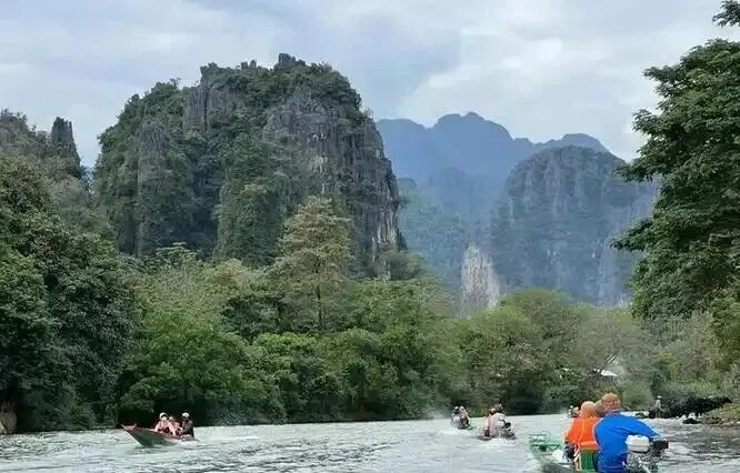 南松河是老挝万荣县境内湄公河的主要支流,以清澈河水、喀斯特地貌和漂流活动闻名,被誉为“小桂林”。