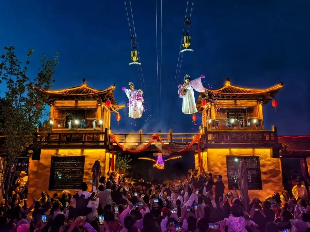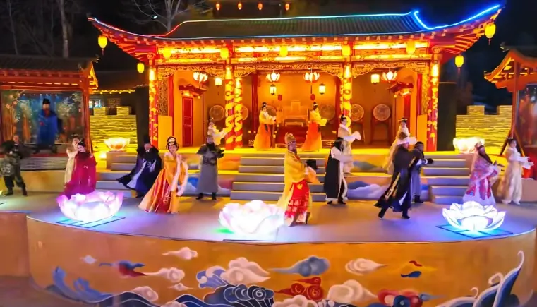 景区内新春灯展、民俗表演、沉浸式剧目演艺、篝火晚会、瀑布烟花等精彩活动让人目不暇接,还能体验与西王母、弘化公主、唐王、哈公公、可汗、将军、李白、王昌龄、媒婆、月老、二郎神、大圣、小鹿女等二十几位新增NPC的牵手互动,机智对答。小伙伴们,抓紧时间赴一场千年之约,感受喜庆年味下的极致浪漫!