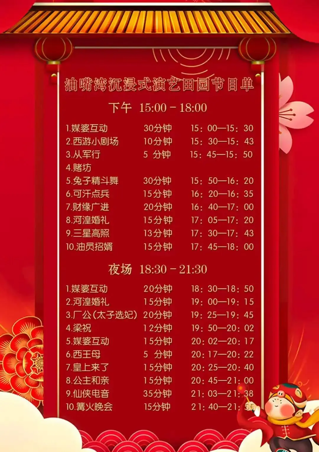 号外号外!油嘴湾生态文化景区沉浸式演艺活动将于3月8日(正月二十)截止!还没来得及游玩体验的小伙伴们要抓紧时间啦,错过又得等一年!