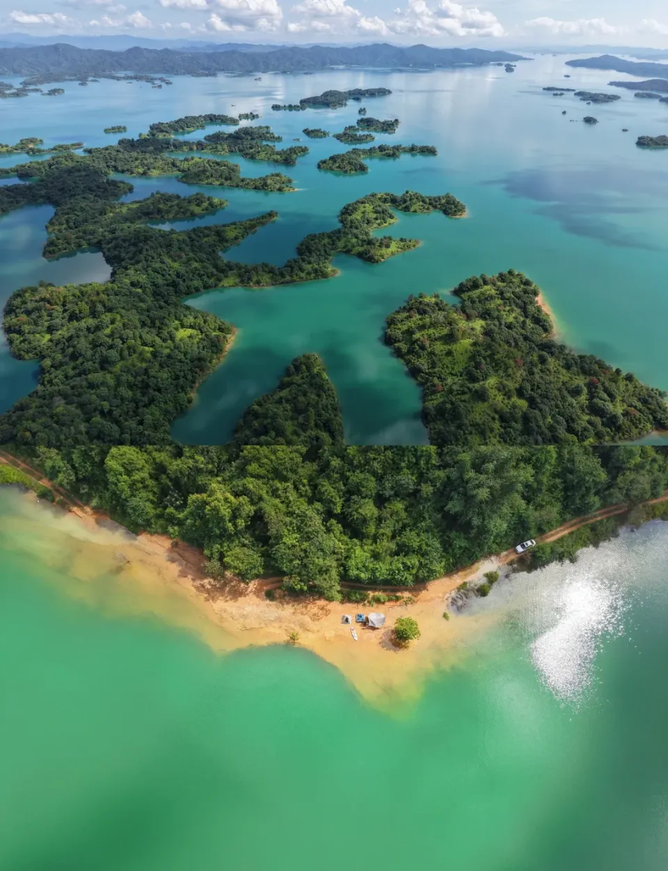 万绿湖的水,真的是那种让人想喝一口的“农夫山泉绿”。春日里乘船游湖,吹着湖风,看碧波万顷,满眼都是治愈的绿色,彻底逃离城市喧嚣,放松感拉满。