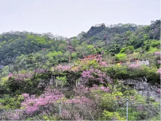 赏花亮点:千亩野生紫荆花+亿年喀斯特奇石,可探溶洞、打卡奇石景观、体验非遗打糍粑。
