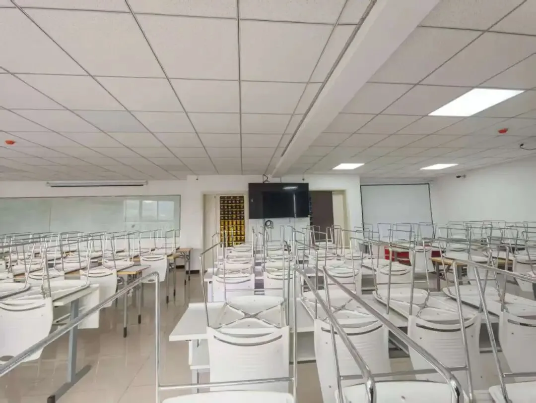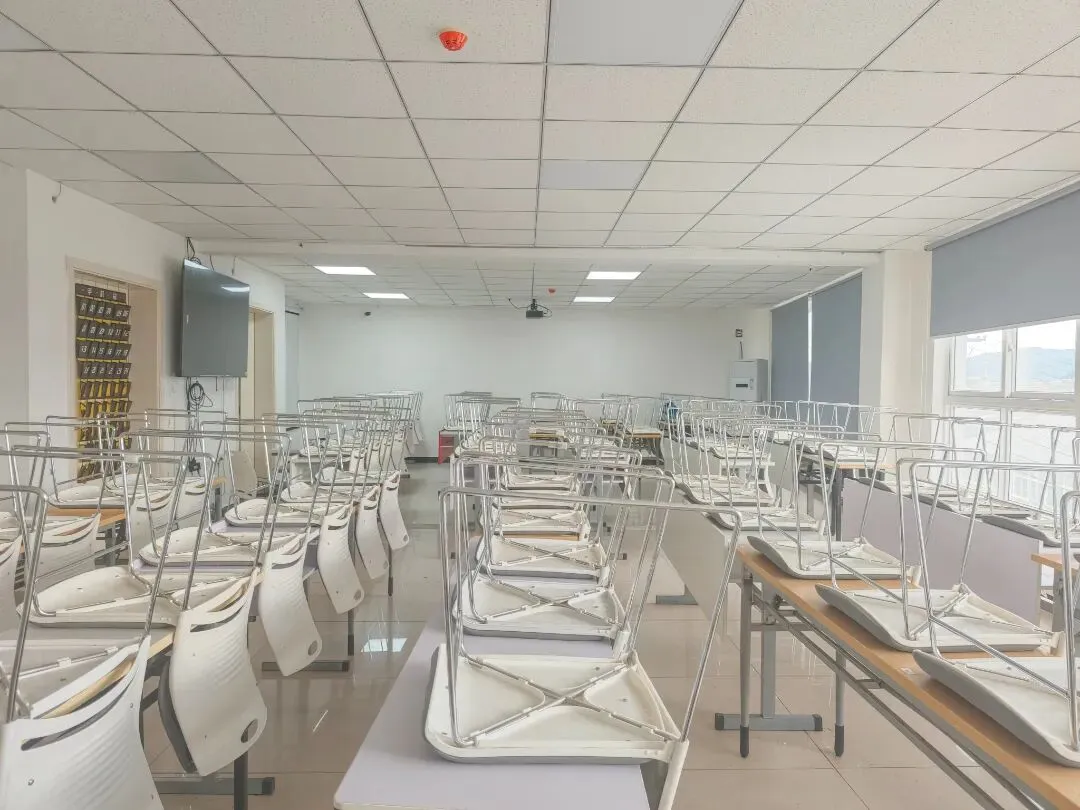 风扇辅助通风透气:不用为“看不清黑板”“挤得慌”分心,电子大屏,多媒体教学设施,环境安静、整洁、明亮。老师的声音清晰入耳,思路跟着老师节奏走!