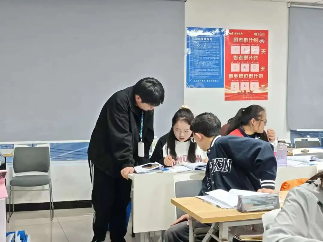 我们实行 “专职班主任 + 助教老师” 双重管理模式:班主任严格考勤,监督早读、上课、晚自习全程,帮助学员养成规律作息;助教老师实时跟踪学习动态,一对一解答疑问,提供阶段性学习建议;定期开展全真模考与效果评估,精准定位知识漏洞,及时补缺补漏,确保每一份努力都有实效。