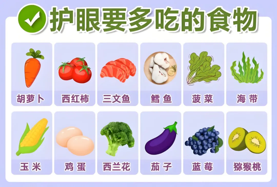 1.补充护眼营养:适量摄入维生素 A(保护角膜、提升暗视力)、叶黄素(抵御蓝光、保护视网膜)、维生素 C(延缓眼部组织老化),助力视力健康;