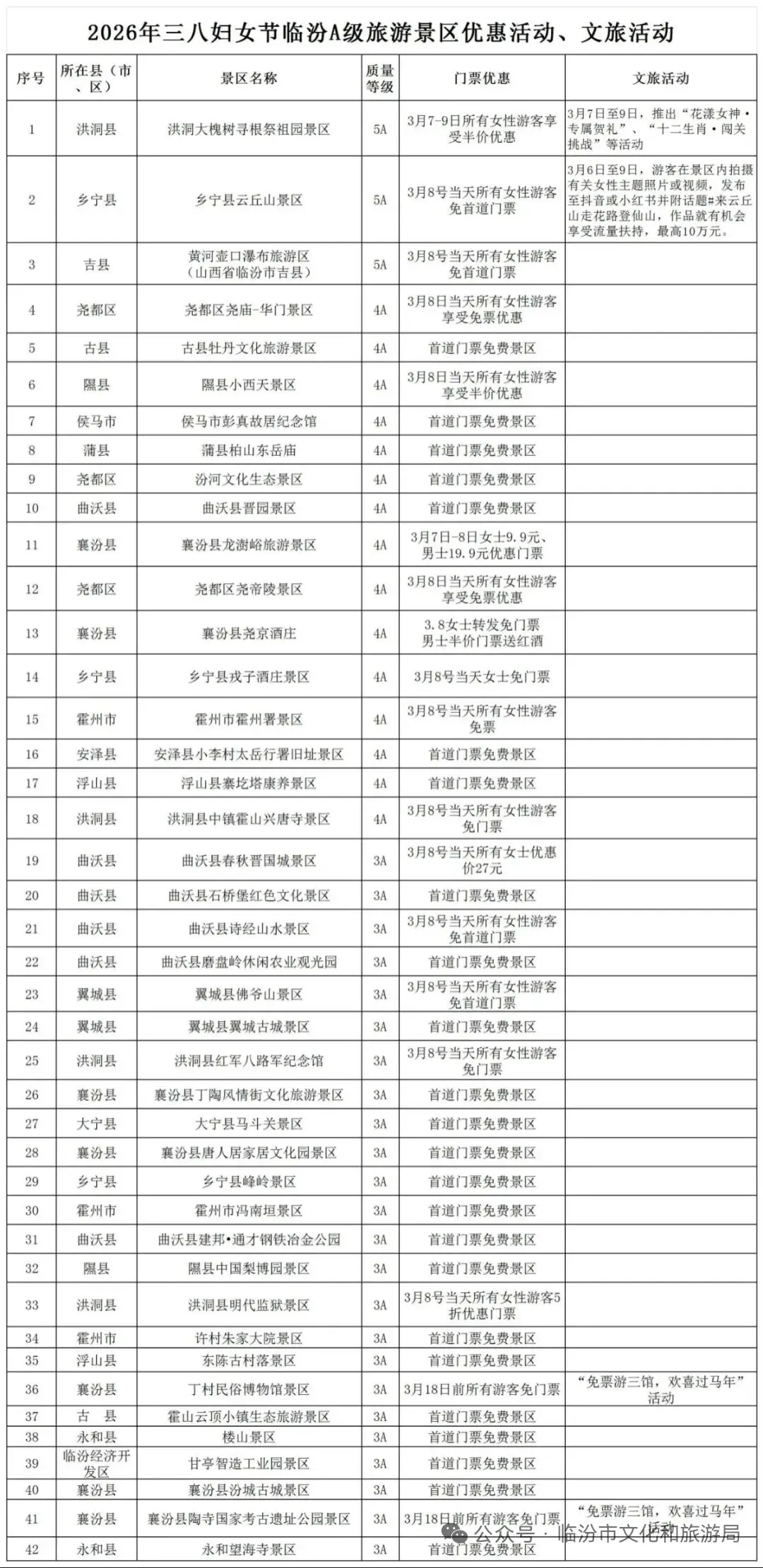 热点 ▍临汾多家景区限时免费、半价→