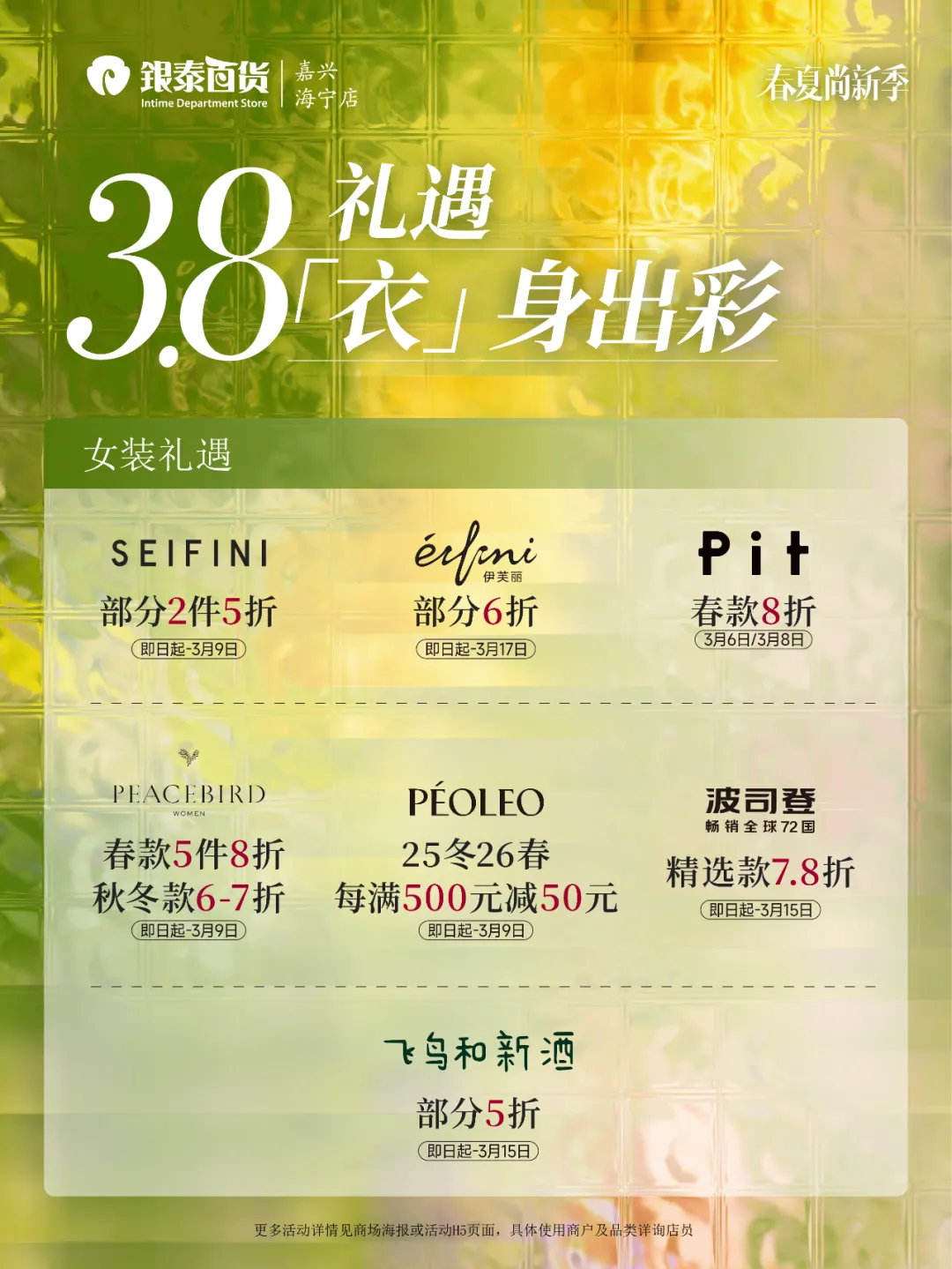 @海宁姐妹们,景区、商场、工厂店……专属福利来啦!