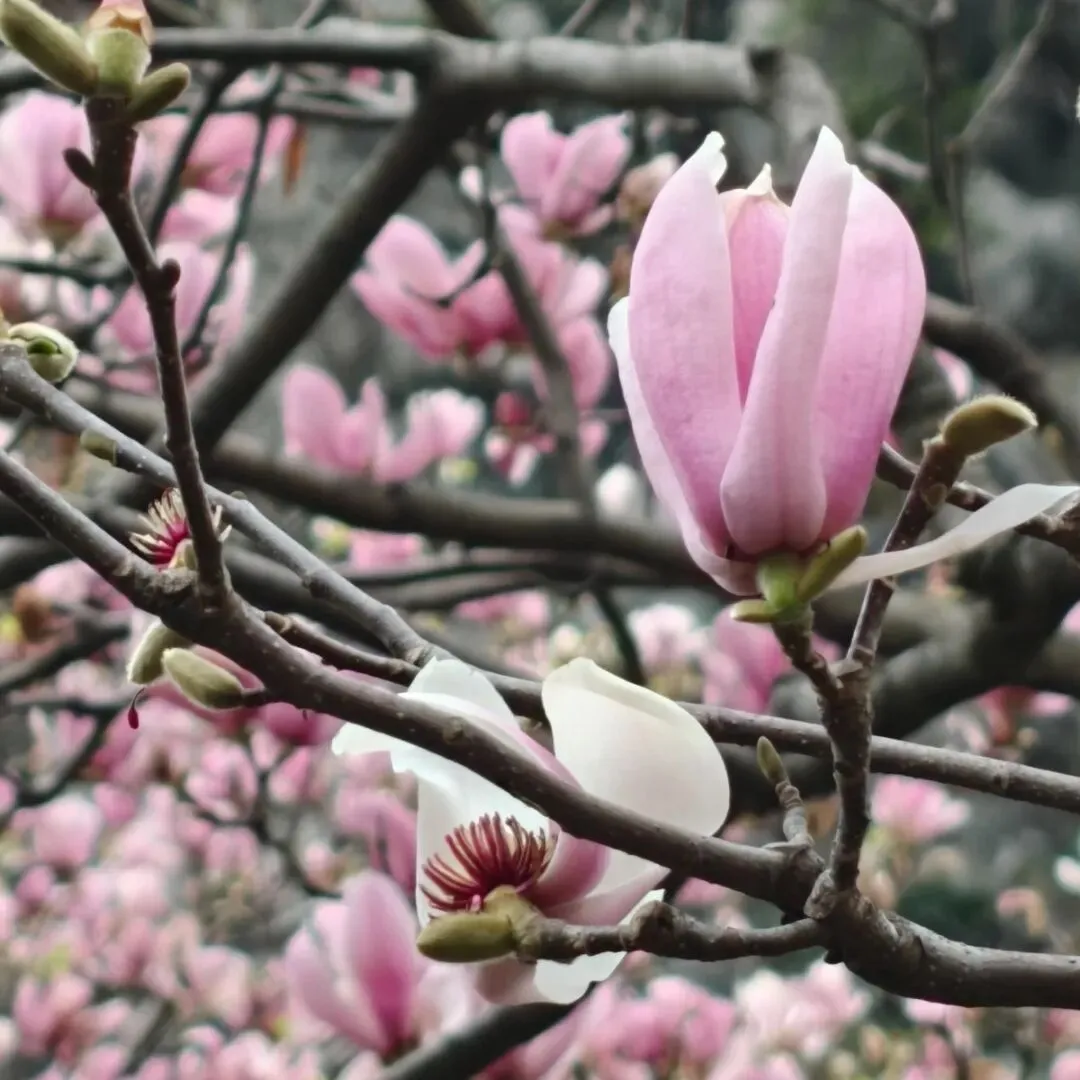 春日的伏波山,好运玉兰与山茶花竞相绽放,洁白如雪的玉兰与娇艳似火的山茶交相辉映,共绘出一幅绚丽多彩的春日画卷。漫步其中,花香扑鼻,让人陶醉不已。