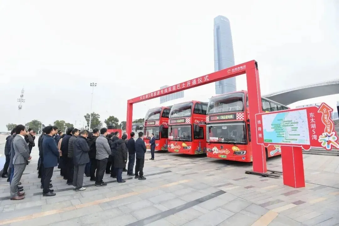 正值惊蛰,春意萌动,万物复苏。今天(3月5日),东太湖S湾旅游专线双层巴士开通仪式在苏州湾阅湖台广场举行,标志着这条“更上一层”的赏花观湖特色线路正式启程。届时,游客可乘坐双层巴士,穿行于湖光潋滟与春色烂漫之间,沉浸式感受“人在车中坐,车在画中游”的诗意旅程。这条串联起S湾沿线各大景点观光专线正式投入试运营,不仅为东太湖的生态画卷增添一抹亮色,也为吴江擦亮特色太湖IP添上了灵动一笔。