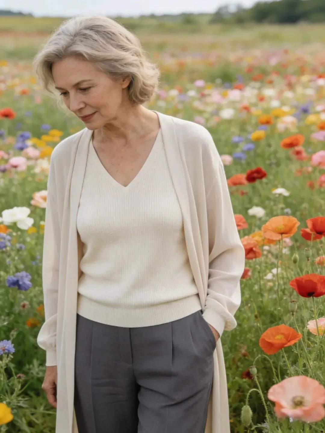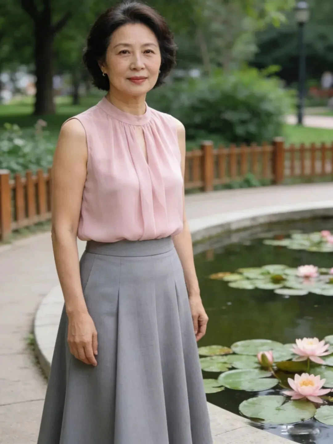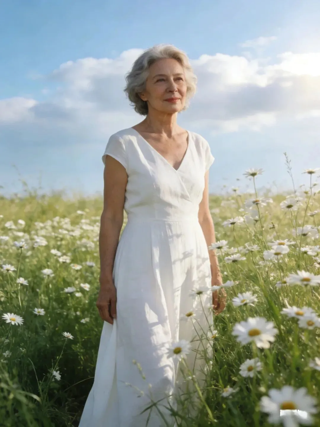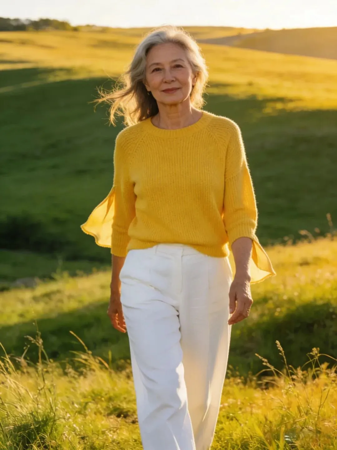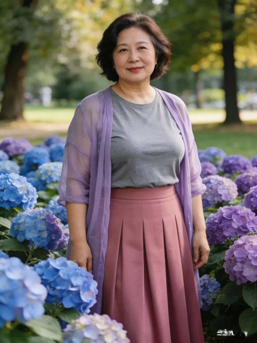 过了60岁,肌肉、皮肤都成下滑状态,松弛有下垂,腰部,手臂,大腿上最容易长肉了,穿长裙长可以遮肉,也会显得人端庄大方,优雅自然。