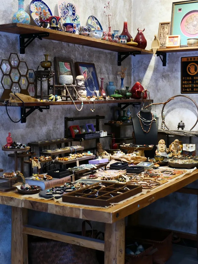 还有一家陶艺品店,造型各异的陶制品、手串很吸睛。据老板说,他是合柴1972园区从景德镇招商过来的,必须为远赴景德镇招商的合柴1972和远道而来的店主点赞!
