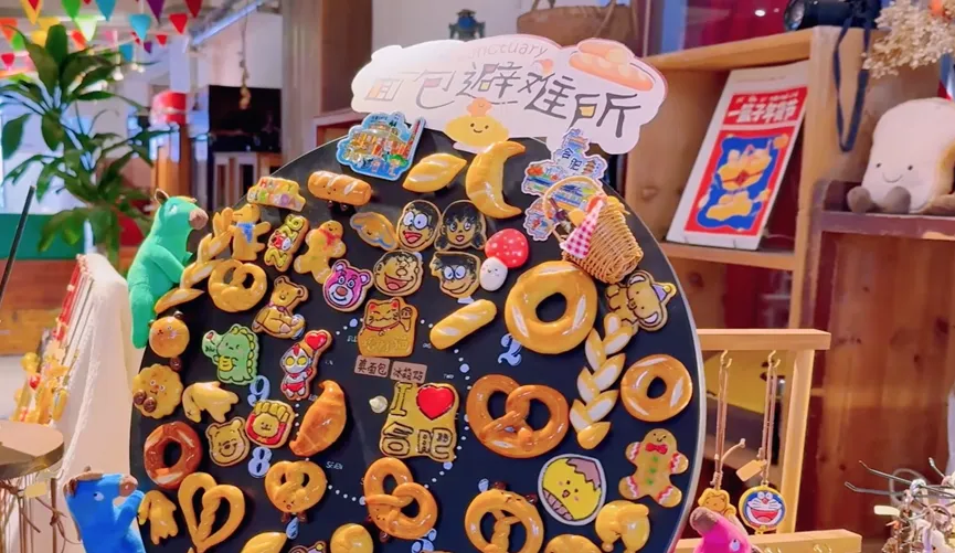 沿着主干道走到头是南淝街,这里除了一些美食商家,班长印象最深的是“复合肥”,里面能拍照打卡,能喝茶、喝咖啡,还有窑烤面包,可谓全能。