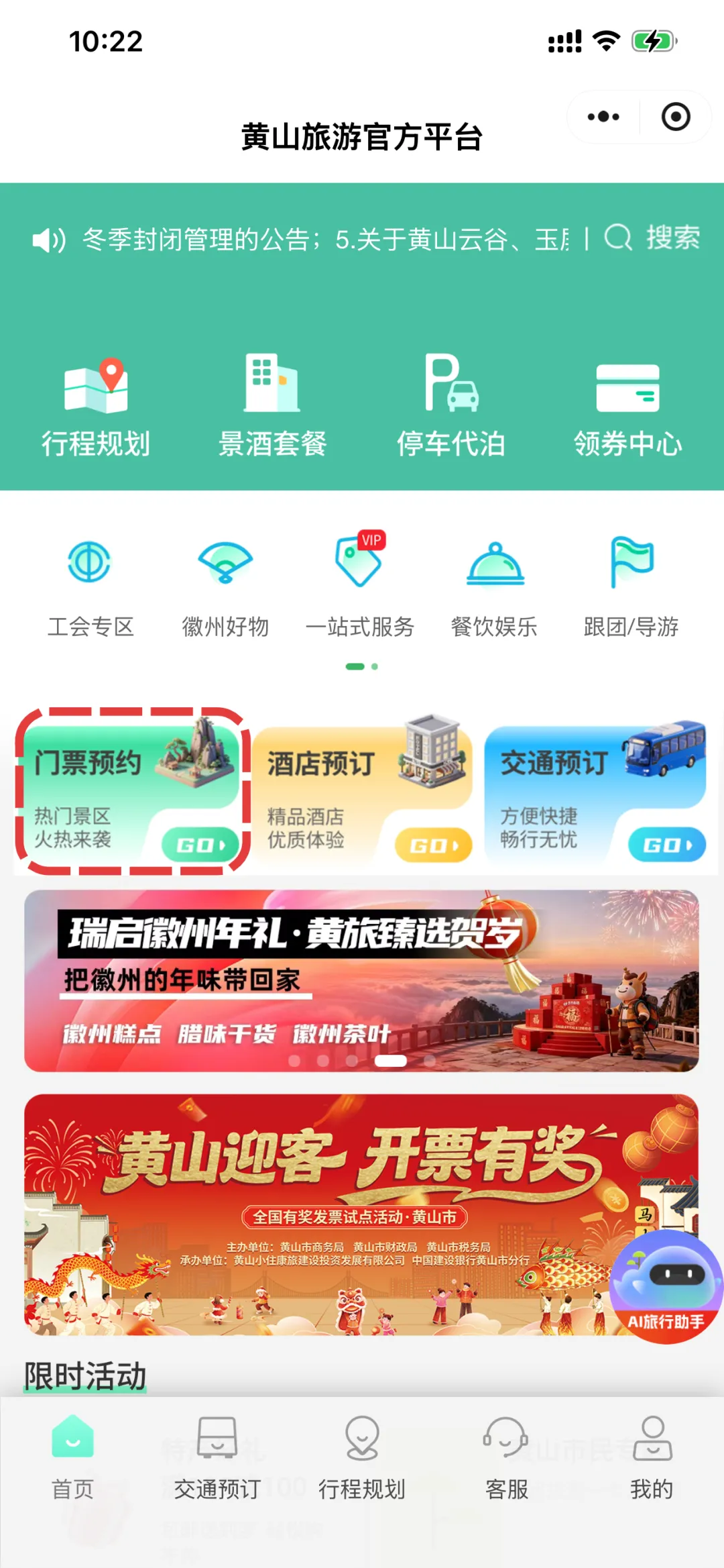 预约入口:进入黄山旅游官方平台(支付宝、微信)小程序
