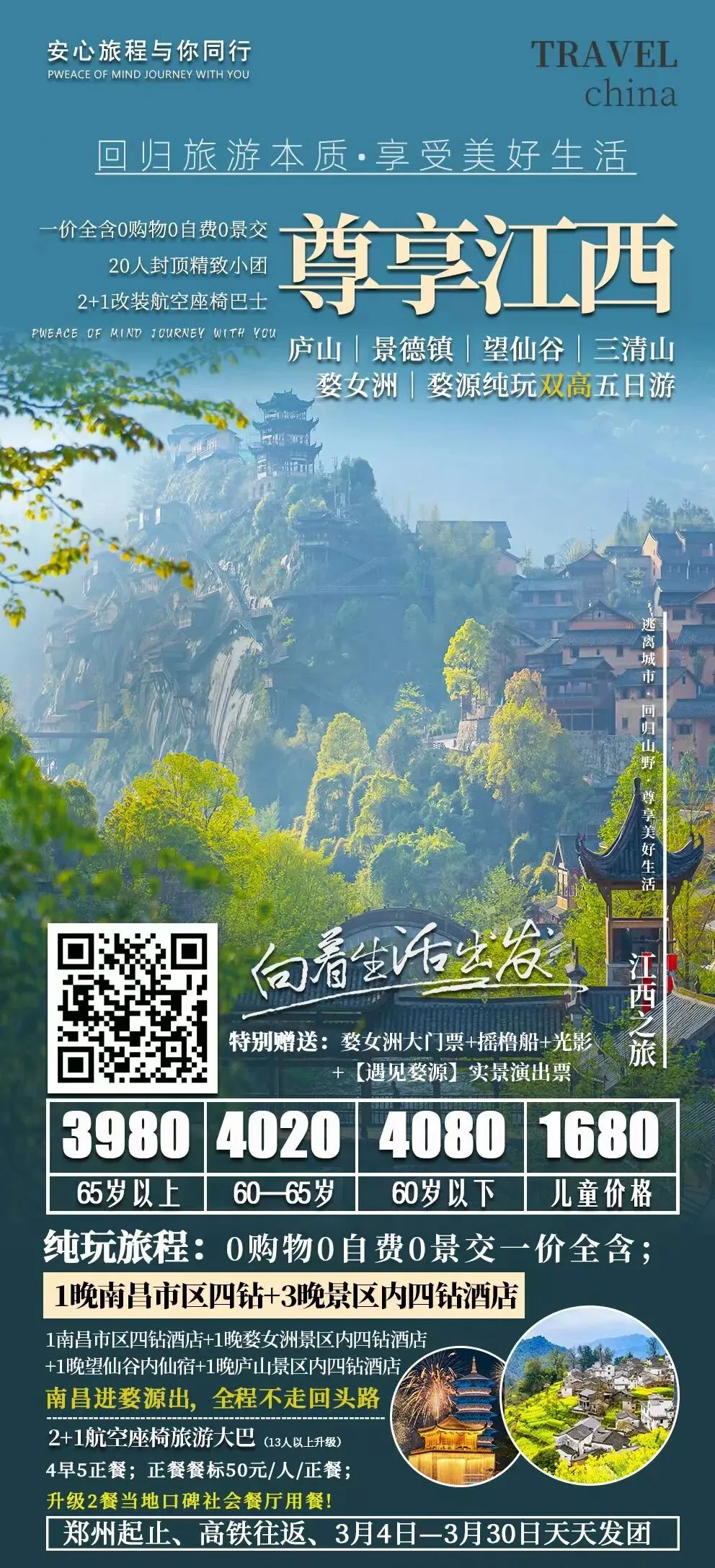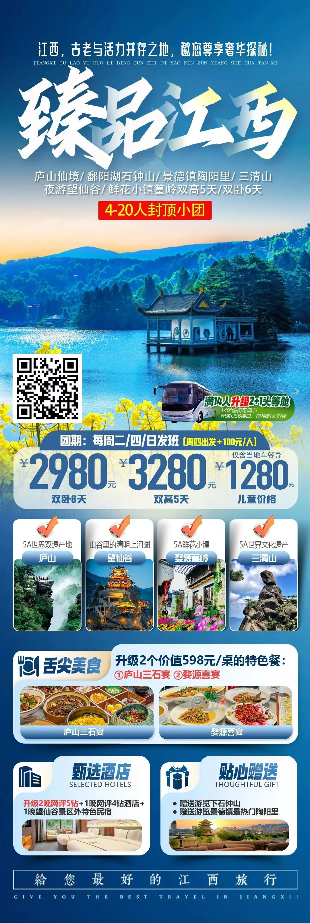 🎈3.8/10/12/15【臻品江西】双卧6/双高5天· 4~20人精品小团👍🏻庐山·三清山·篁岭·鄱阳湖·望仙谷·景德镇