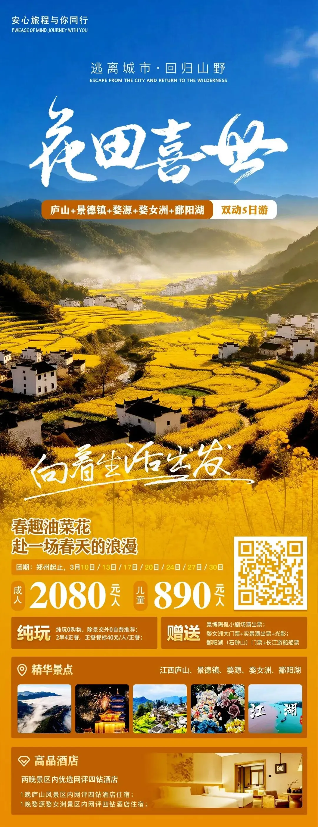 🏞️郑州起止,3月5日-3月30日天天发团