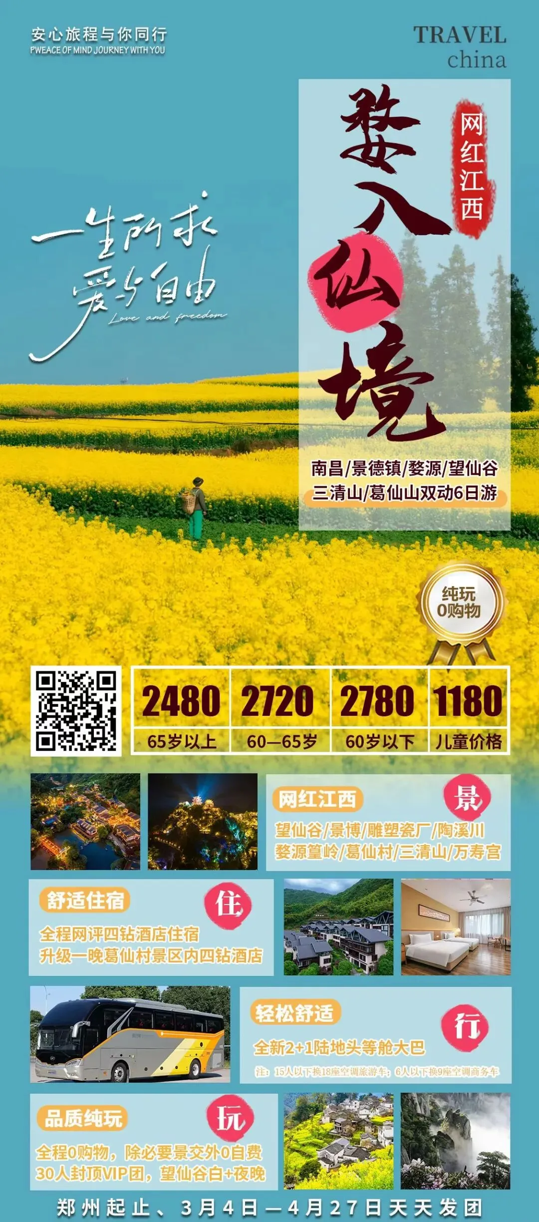 品质出行,全程0购物,除必要景交外0自费;